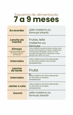 Esquema das refeições de 06 meses a um ano ;